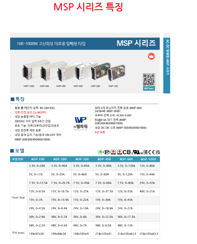 오늘, 의료 및 산업 장비를 위해 특별히 설계된 '민웰(Mean Well) MSP 시리즈'를 자세히 소개해 드립니다.