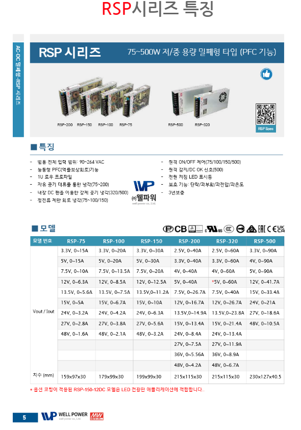 MEANWELL(민웰) RSP시리즈 75~500W 중/고 용량 밀폐형 타입 (PFC 기능 설명)