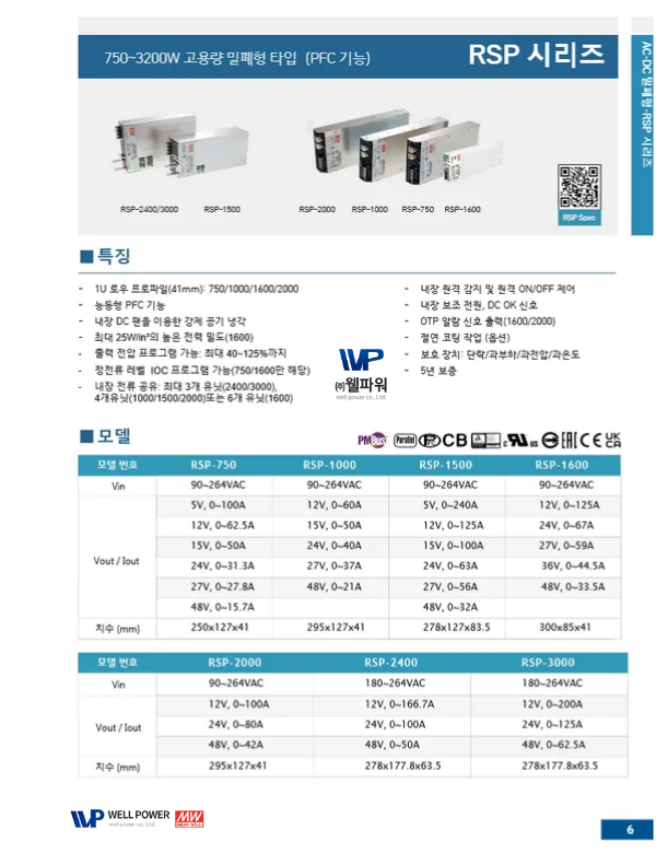 오늘은 세계적인 SMPS 업체 MEANWELL(민웰)의 PFC 중/고출력 모델인 RSP 시리즈에 대해 설명해드리겠습니다!