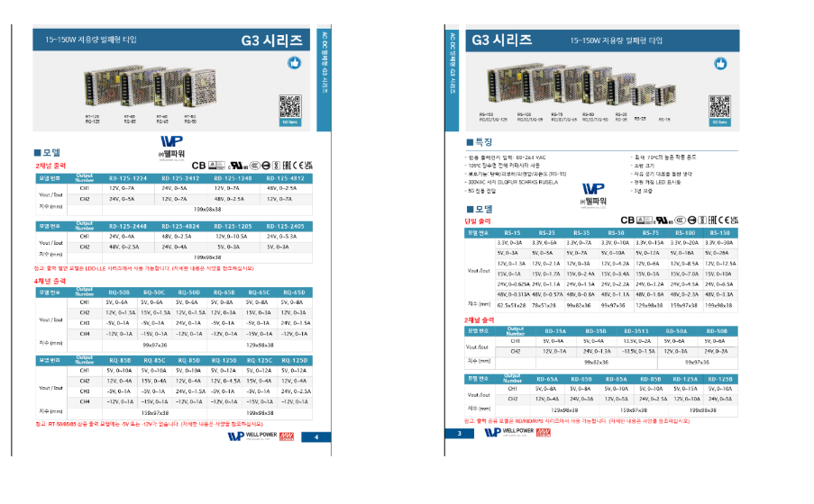 민웰(MEANWELL) 15~150W 저용량 밀폐형 타입 SMPS